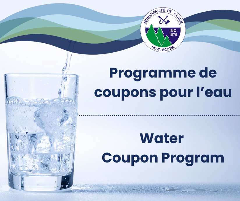 La Municipalité de Clare a le plaisir de lancer un nouveau programme de coupons pour l'eau afin d'aider les résidents à se procurer plus facilement de l'eau en bouteille.